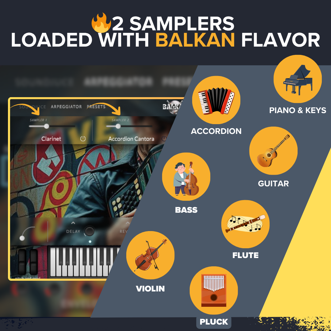 BALKAN’s built-in dual samplers bring organic emotion straight into your mix.
